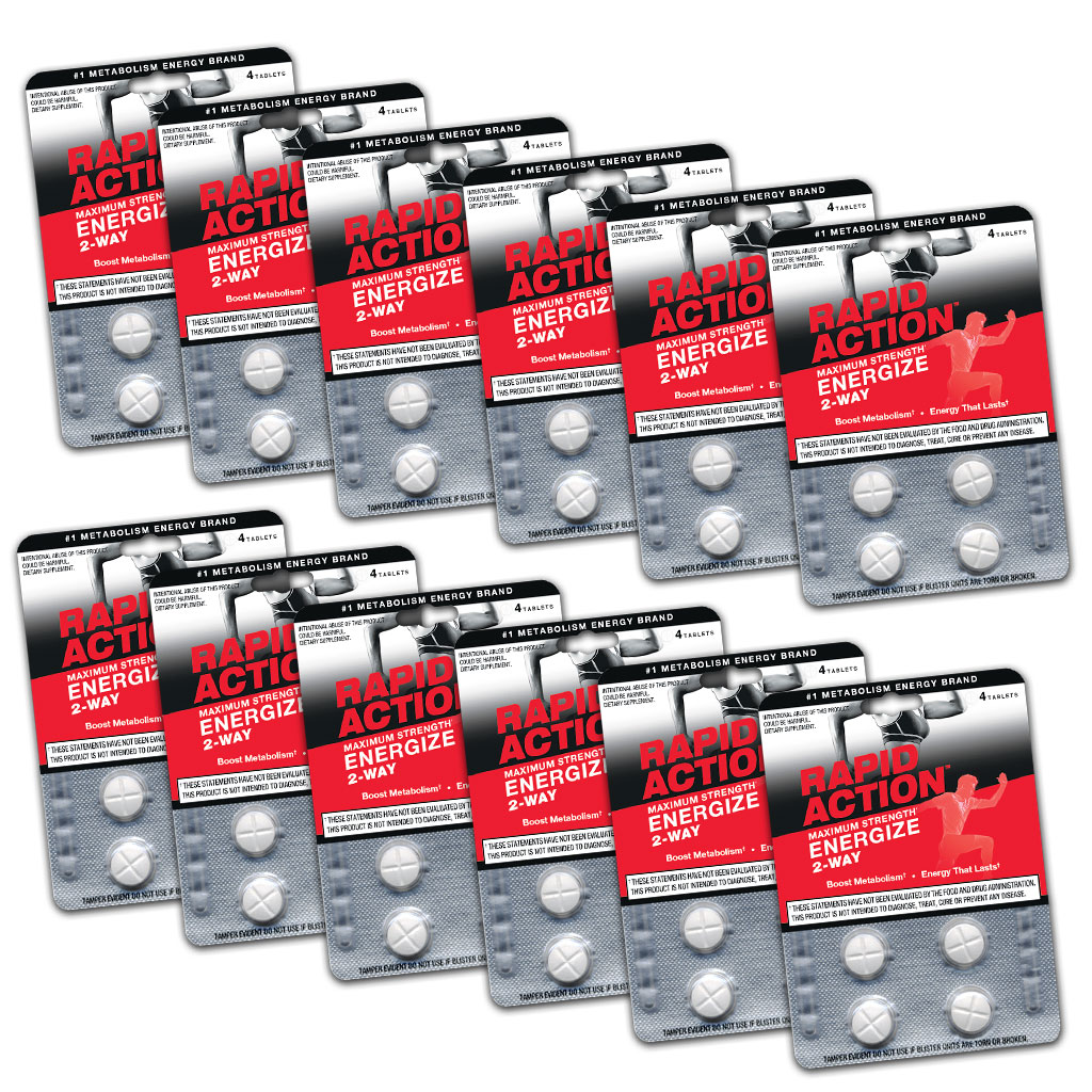Rapid Action® is the fastest growing energy brand on the market and is a top selling dietary supplement. With over a million units sold, you can be assured of a great quality product. Rapid Action® ENERGIZE 2-Way provides an extra energy boost that fights fatigue, brings back focus, and just makes you feel like you again! Get the endurance to fulfill all your daily activities, as well as speed up your metabolism.